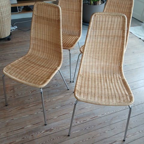 6.stk flotte flettede spisebordsstole med flet og slankt forkromet stålstel.☺️