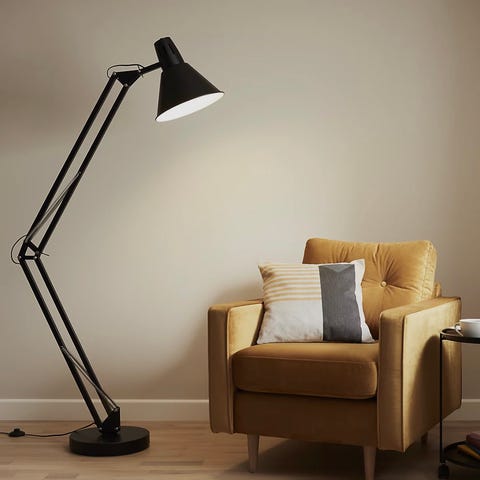 Gulvlampe, stor arkitektlampe der måler ca. 180 cm., når den er helt udstrakt. Der er afbryder på ledningen.