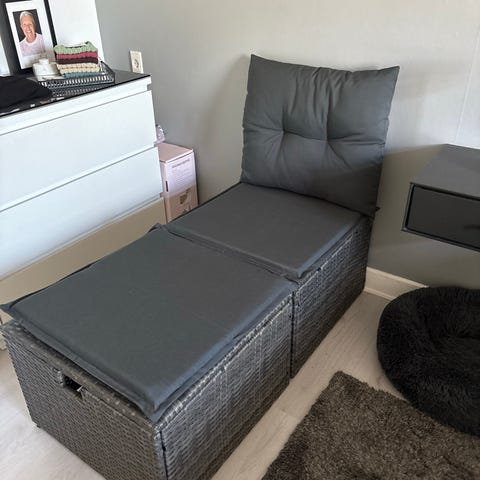 Super lækre camping stole med fodskammel til begge stole.