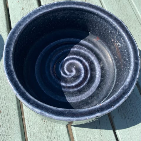 Jeg sælger ud af min Dagnæs-samling, bl.a. denne lille skål. Skålen har en helt exceptionel blålig krystalglasur - jeg har i hvert fald ikke set noget lignende fra Dagnæs.