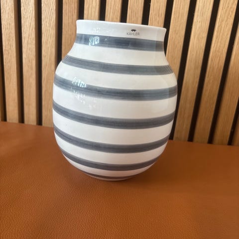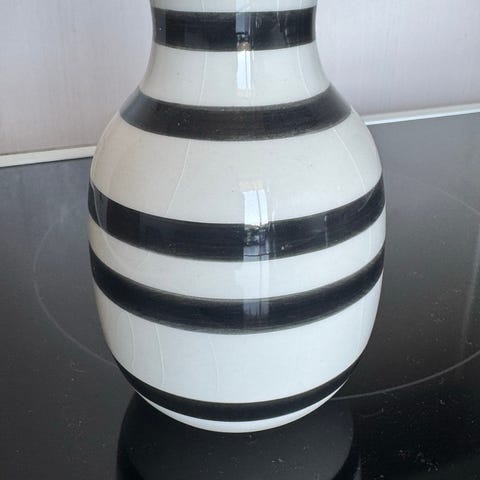 Kähler Omaggio vase med vandrette striber i sort og hvid. Vasen er fremstillet i keramik og har klassisk rund form med smal åbning foroven. Velegnet til brug som dekorativ gulv- eller bordvase til blomster eller grene.