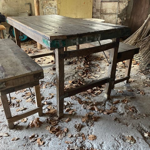 Silvan bord-/bænkesæt i træ med metalstel. Sættet består af et bord og to bænke med sammenklappelige ben, som gør det nemt at opbevare og transportere. Bordplade og sæder er i træ, mens stellet er i metal for stabilitet og støtte. Velegnet til brug i have, på terrasse eller til arrangementer, hvor der er behov for ekstra siddepladser.