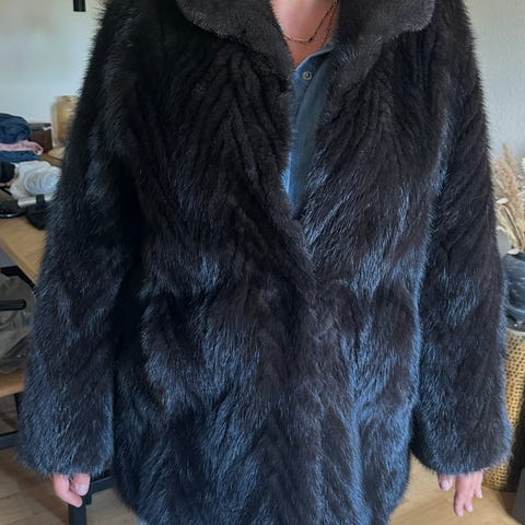 Mørkebrun pels fra SAGA mink i Superb Quality. Meget fin stand, brugt sparsomt. Smuk underkant.