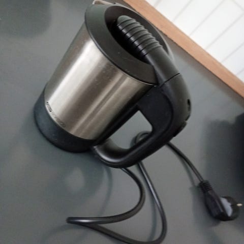 Russell Hobbs elkedel i sort plast. Elkedlen har vandstandsindikator på siden og ledning til strømtilslutning. Egnet til opvarmning af vand til f.eks. te, kaffe og madlavning.