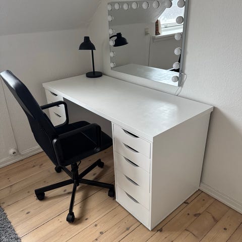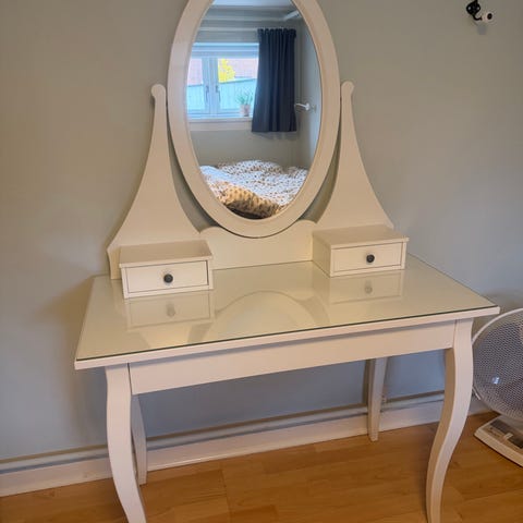 Bordet fremstår pænt og velholdt med minimale brugsspor. Perfekt som sminkebord eller skrivebord.