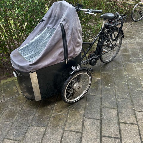 Sælger vores Nihola el-ladcykel. Den er ca. 7 år gammel og har været brugt jævnligt, så den har en del kilometer i benene.