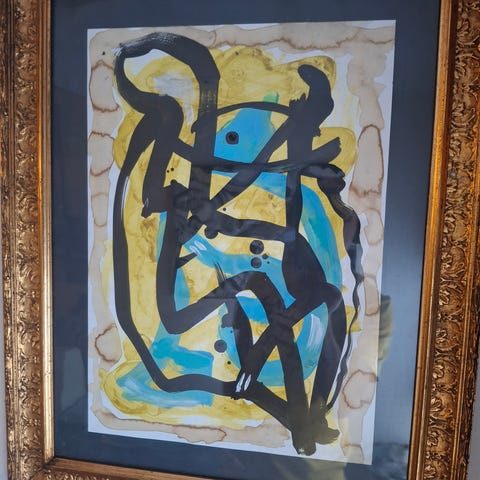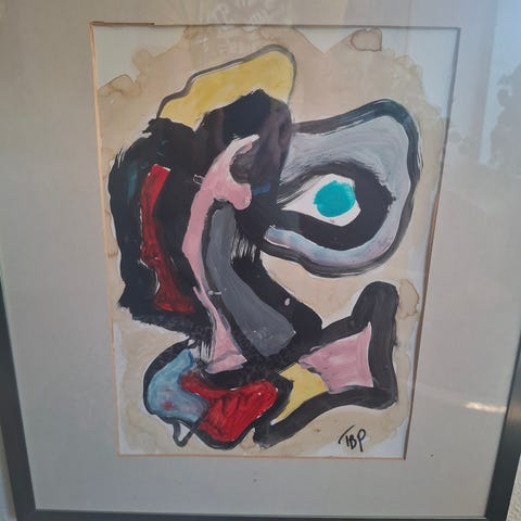 Unika værk fra TBP ART. Akryl og kaffe på papir. Cobra insp værk