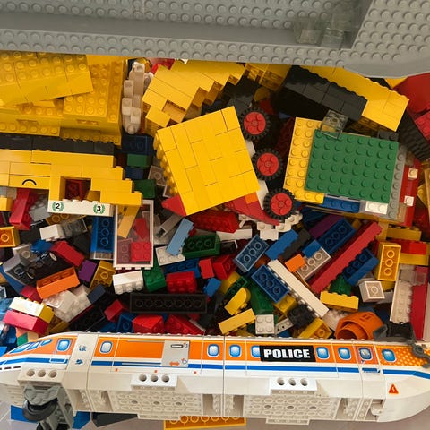 Ca 20 kg ældre lego uden vejledninger, nogle er små samlet og en del er farve sorteret (uden samle vejledning)