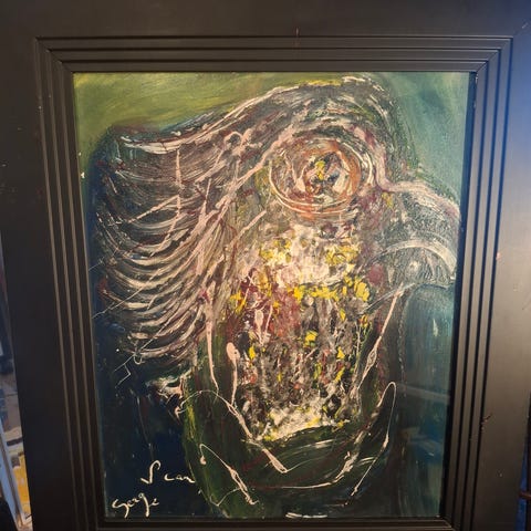 90×90. Lækkerr stort cobra værk fra 1969. Signeret monogram..