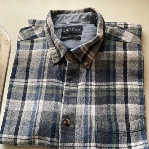 NN07, Ternet skjorte, brunlig/marineblå, Blød bomuld, Str. XL