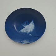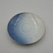 Dyb skål i glaseret keramik med blå overflade og gyldne dekorationer af stiliserede blade, ideel til servering og dekoration.- Bemærk at mail, chat og beskeder ikke besvares, og varen skal købes på knappen "Gå til varen". Efter reservering af varen har du 10 dage til at afhente den i den butik, varen er på lager i.