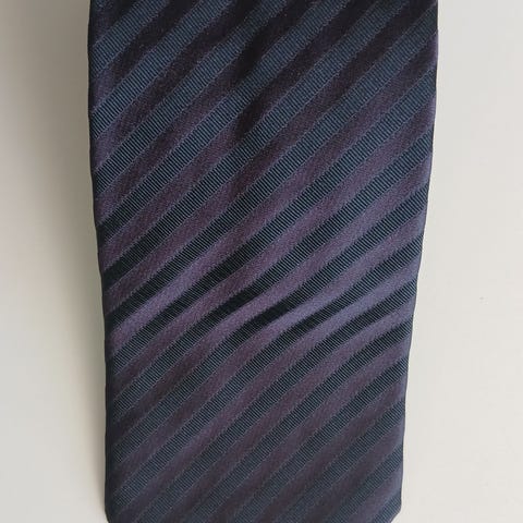 Dette slips har et stribet mønster i forskellige nuancer af sort og brun. Slipset er lavet med en blanding af teksturer, der giver et diskret, men stilfuldt udtryk. Det er et klassisk tilbehør, der kan bruges til både formelle og semi-formelle anledninger.