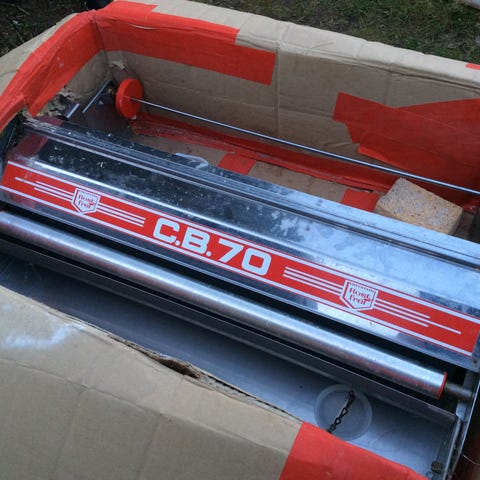 Består af TapeTech 07TT automatic taper (”bazooka”) samt 72TT pumpe/filler + original transportkasse og diverse tilbehør (se billeder).