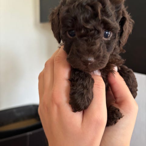 Han er en blid hvalp med et rigtig fint og mildt udtryk – og han virker som en tryg lille fyr.