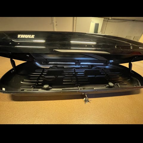 Thule tagboks i sort. Tagboksen monteres på tagbøjler og bruges til ekstra opbevaring af bagage på bilen. Velegnet til transport af kufferter, tasker eller andet udstyr på længere ture. Aerodynamisk form, som typisk reducerer vindstøj sammenlignet med mere kantede modeller. Passer til de fleste biler med passende tagbøjler og korrekt monteringssystem.