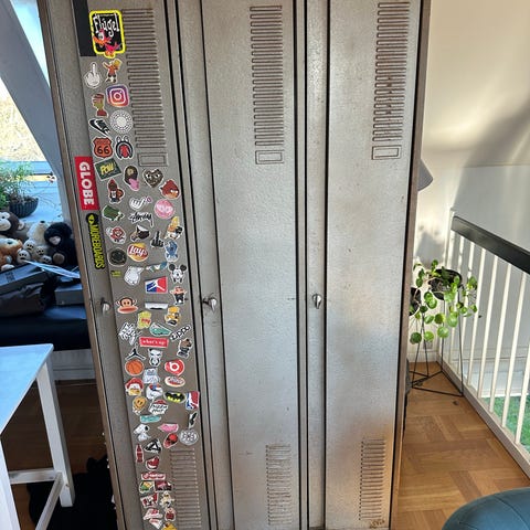 retro skab, vintage skab, metalskab, industriskab, garderobeskab, locker, klædeskab, opbevaringsskab, industrielt møbel, værkstedsskab