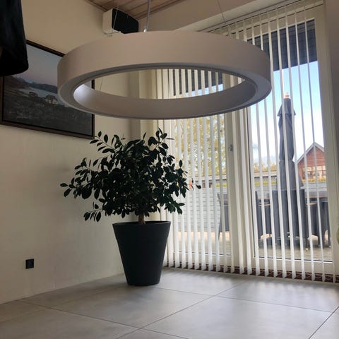 LED-pendellampe, består af tre oplyste ringe, som hver har forskellige størrelser og er udstyret med kraftige LED'er.