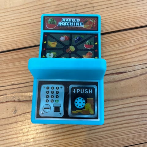 Virker 100% med lys og lyde, funktion uden lyd også. Små bamser følger med og små lege mønter.