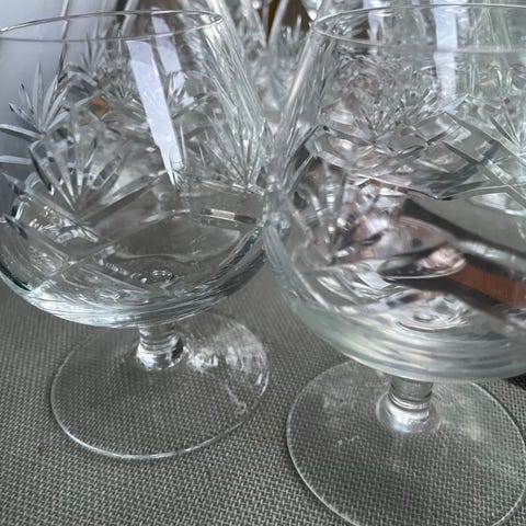 Lyngby Oxford glas. Sæt af forskellige glas på stilk med facetslebet mønster.