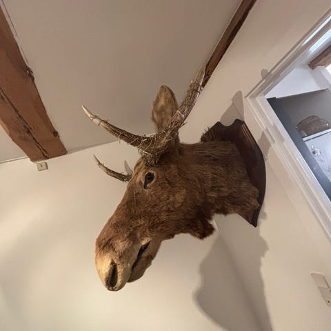Har desværre en skade på geviret. En tak er knækket af. Se billed.