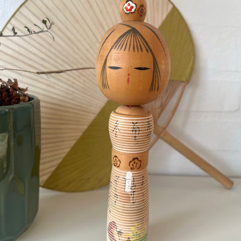 Japansk kokeshi med flot motiv af japanerinde 🇯🇵