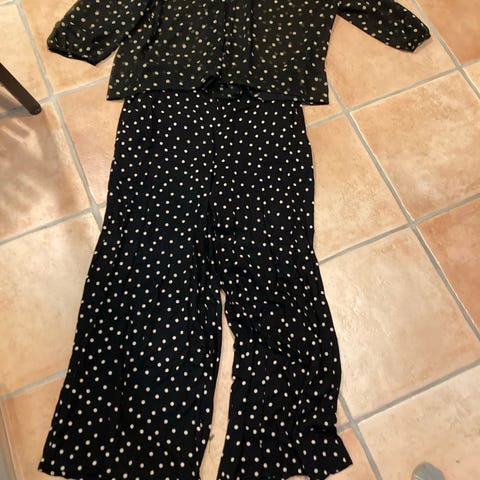 Birgitte Herskind blondesæt bukser og bluse blå polyester str. 36 dame