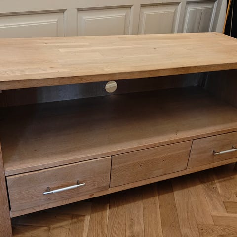 Vil også fungere fint som tv-møbel. Står med forventelige brugsspor (kan shines op med en slibning og en efterbehandling).
