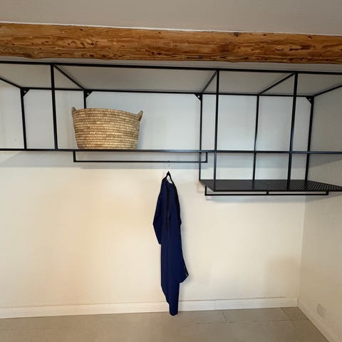 Sælger denne stilrene vægopbevaring i sort metal (60x80 cm). Perfekt til køkken, kontor eller entré. Medfølger kurv, hylde og kroge – kan nemt flyttes rundt efter behov.