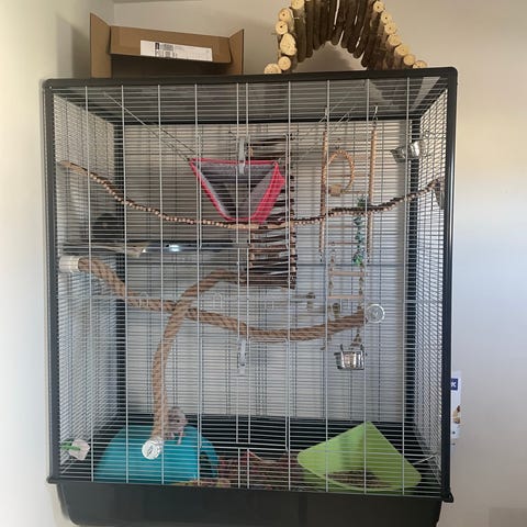 Tilde (hunnen) følger med det store ferplast multipla bur med målene L107,5 x B37,5 x H 42 cm hun er kærlig og håndtam når hun lige lære en at kende.