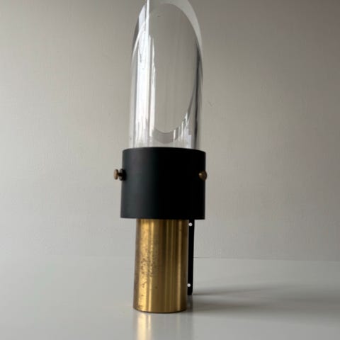 Bent Karlby for LYFA, væglampe af teak & messing med konisk skærm af opalglas