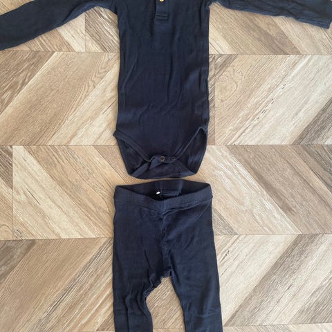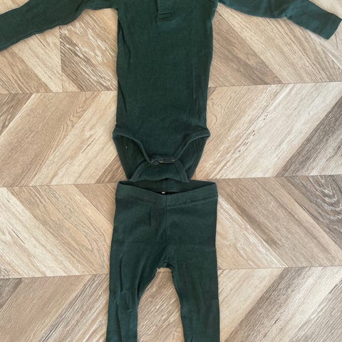 Sødt sæt i lysegrøn med hunde fra Name It str. 86. Sættet består af en langærmet body og matchende bukser.