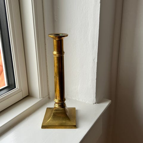 Design Asmussen guldbelagt messing lysestage til kronelys. Fin patina :-)