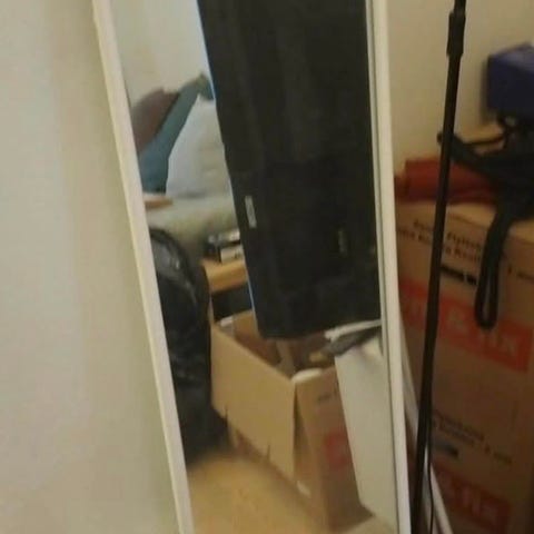 IKEA spejl i rektangulær form med hvid ramme. Spejlet er fuldlængde og egner sig til ophængning på væg i fx entré, soveværelse eller garderobe. Rammen har en smal profil, som giver et enkelt og neutralt udtryk, der passer ind i mange typer indretning.