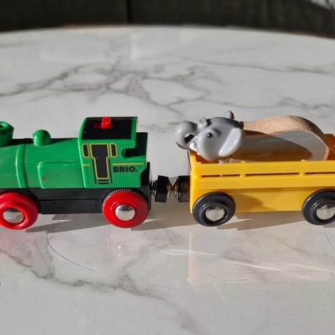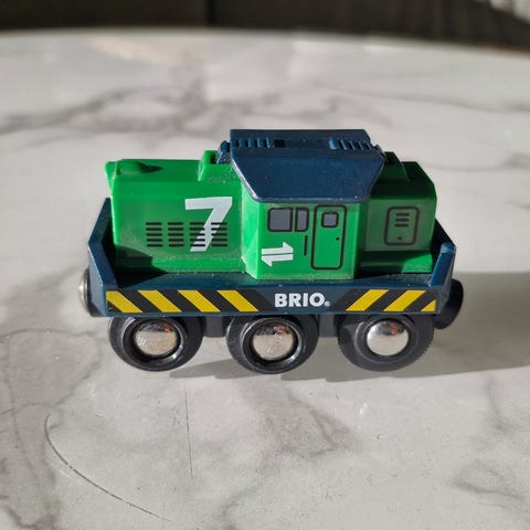 Indeholder en bevægelig kulvogn og roterende cementblander samt forlygter, der oplyser motoren
