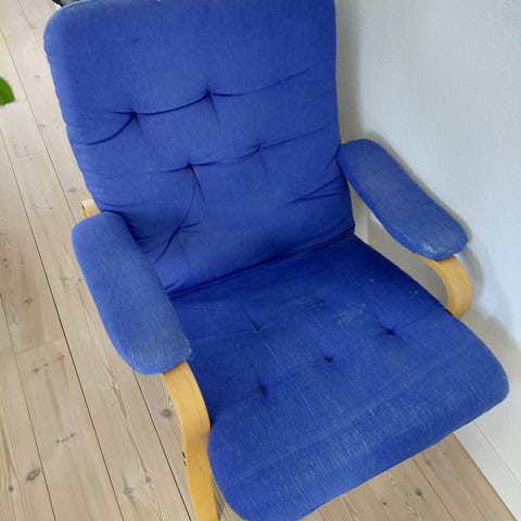 Elegant blå lænestol med god siddekomfort.