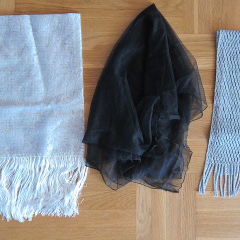 Ca. 175 cm i bredden og 80 cm i længden, plus frynser.