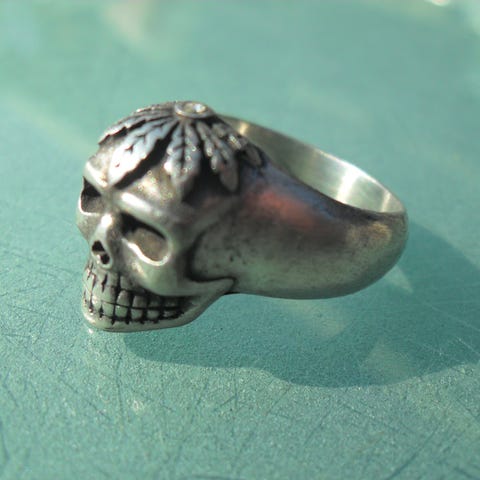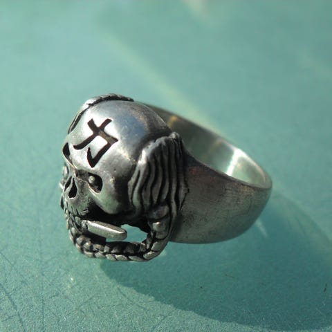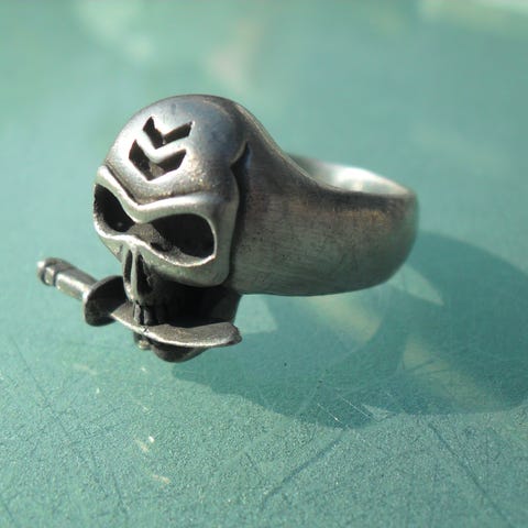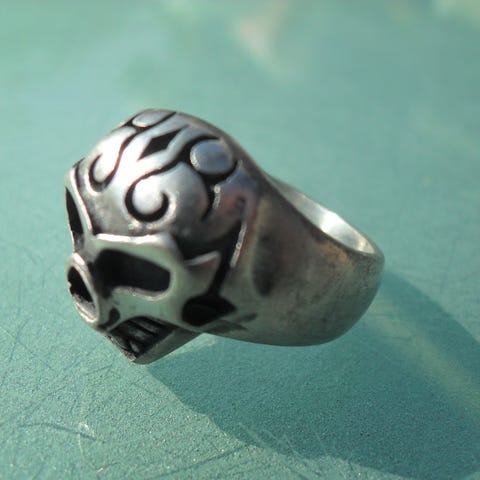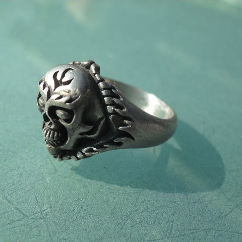 METAL RING MED DØDNINGEHOVED MED SLANGER FRA ENGELSKE ALCAMY 25 X 17 MM.