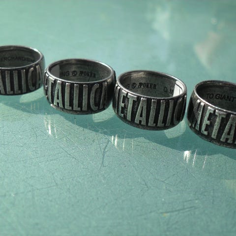 METALLICA RING I METAL FRA ENGELSKE ALCAMY. 18 X 18 MM.