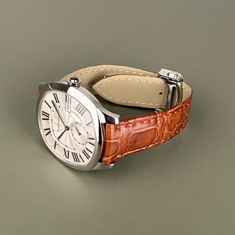 Uret er i meget god stand, kører godt og leveres som et komplet sæt på en ny lysebrun Cartier alligatorrem. Der medfølger en ekstra sort - no brand - læderrem.