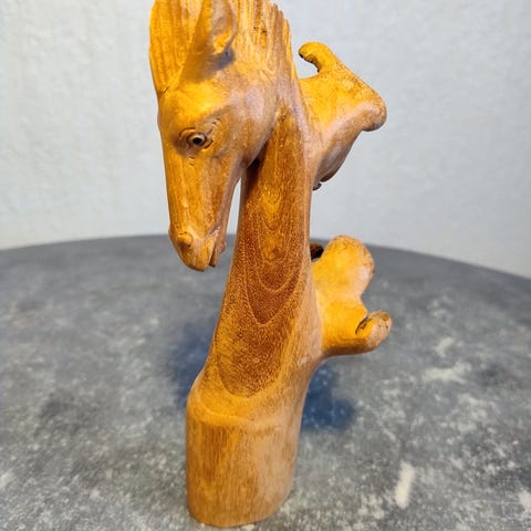 Træfigur / hest i træ, håndskåret, 40 cm høj flot udskåret træ figur med 2 skønne heste, eller er det en hest og et føl?