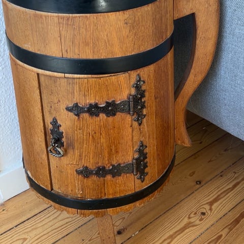 Tøndeformet barskab i egetræ.