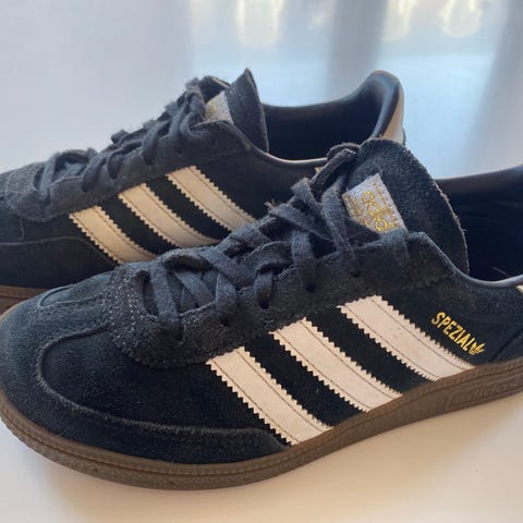 Fineste Adidas Gazelle børnesko i str. 22. Skoene har kun været brugt meget lidt af et enkelt barn. De fremstår i flot lyseblå ruskindsoverdel med sorte striber, lyseblå elastik snørebånd (lidt løse) med velcro åbning se billede nr 5 samt orange hælkappe med Adidas-logo. Ydersålen er i gummi med klassisk Gazelle-profil.