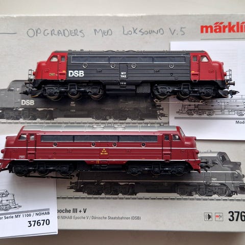 2 X Märklin DSB MY 1147 sælges samlet. Art.nr.#3067. AC analog-kørsel, vekselstrøm. Kører og skifter fint, blot testet for funktion. Fremstår begge i flot og velholdt stand, få brugsspor. H0, 1;87. Klassiske og robuste modeller fra 1970ernes Vesttyskland 🙂