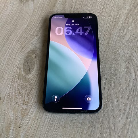 Apple iPhone 13 med 128 GB intern hukommelse. Har dobbelt kamera, frontkamera og Lightning-opladning.