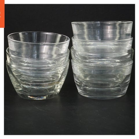 Sæt med 6 transparente glas skåle. Hver skål har en diameter på 10 cm. Ideel til servering eller opbevaring af mindre portioner af mad. Skålene har en enkel og funktionel form.