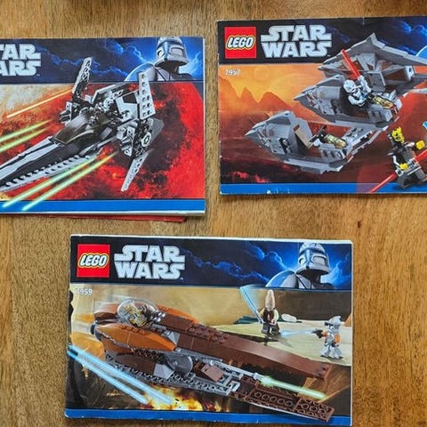 Tre brugte Lego Star Wars-sæt fra perioden 2010–2020: 7748 corporate alliance tank droid, 8086 droid tri fighter og 9491 geonosian cannon, alle uden manual og æske og hver med tre minifigurer med flere dele manglende som beskrevet, og alle som samlerobjekter efter afvikling. Klik på den blå "gå til varen" knap, for at købe eller byde på denne vare. Den samlede pris vil blive vist inden du afgiver dit bud.