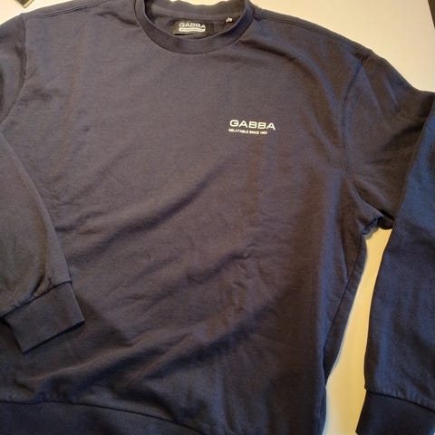 Sweater, Gabba, str. M, Marineblå, navyblå, mørkeblå, Uld/bomuld, God men brugt, 20% uld, 80% bomuld. Flotte strik detaljer og