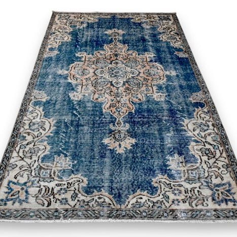 blå vintage - Tæppe - 275 cm - 155 cm - med certifikat