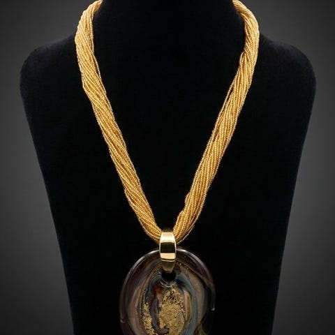 Elegant håndlavet halskæde i ægte Murano-glas, et symbol på venetiansk tradition og ekspertise inden for kunstglasbearbejdning.