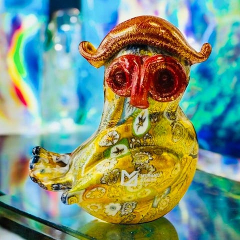 Håndlavet Murano-glasblomstkomposition med blade, kronblade og støvdråber der kan placeres efter ønske, på en glasbund fyldt med Murano-glassten; mål 11 × 10 × 10 cm, oprindelse Italien, i næsten som ny stand, forventet periode 2026, med certifikat og forsikret forsendelse. Klik på den blå "gå til varen" knap, for at købe eller byde på denne vare. Den samlede pris vil blive vist inden du afgiver dit bud.